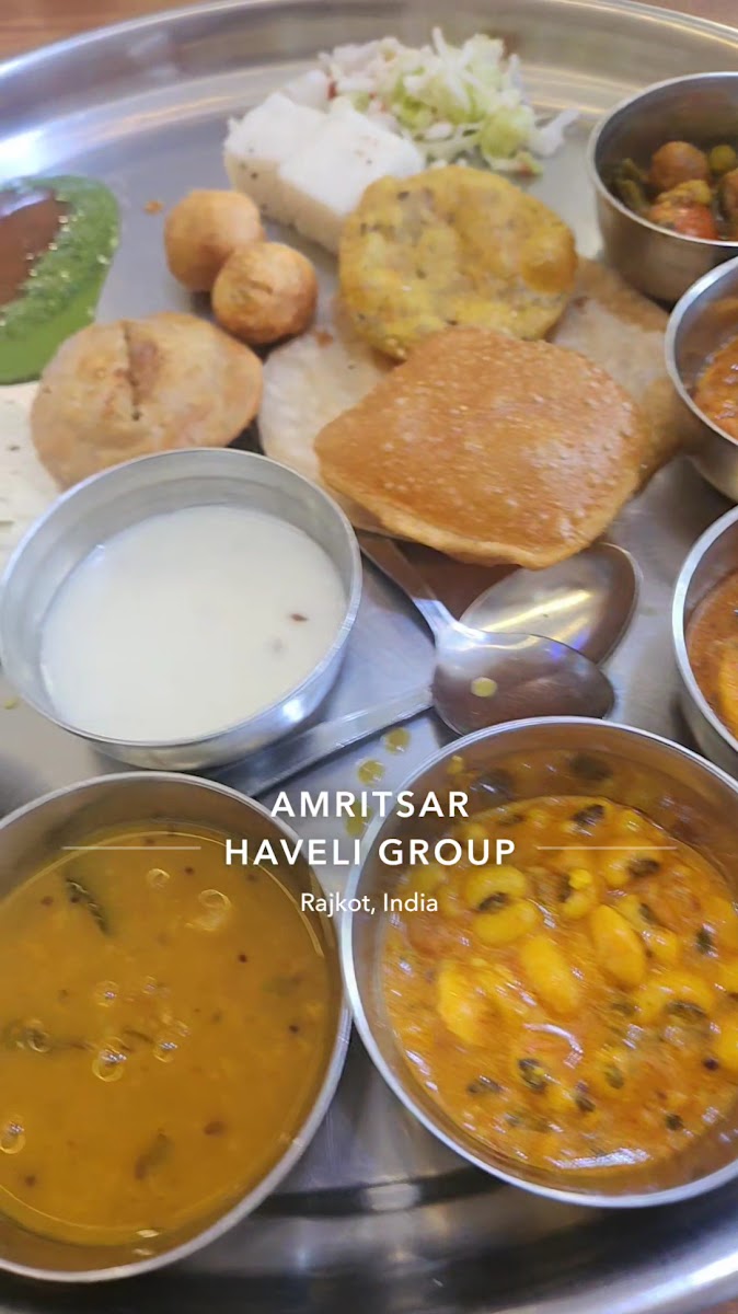 One of the very good restaurant in the rajkot city for the Gujrati thali experience. They serve the variety of subjis some kathiyawadi gujarati and one paneer. And the sweet puran puri is really delicious. Farasan options are also good enough like punjabi samosa and white dhokla(idada). I also tried their basundi(liquid milk sweet) which was really full of taste. And hospitality was also must be noticed kind of thing. They serve with love and always insist for one more roti and one more puran puri.. And in compare to other their price is also fair.